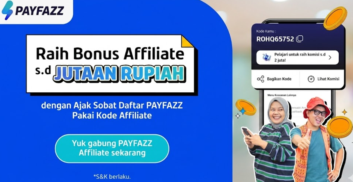 Program Payfazz Affiliate adalah cara mudah untuk mendapatkan penghasilan tambahan dengan mengajak sobat bergabung menjadi Agen Downline menggunakan Kode Affiliate milikmu.